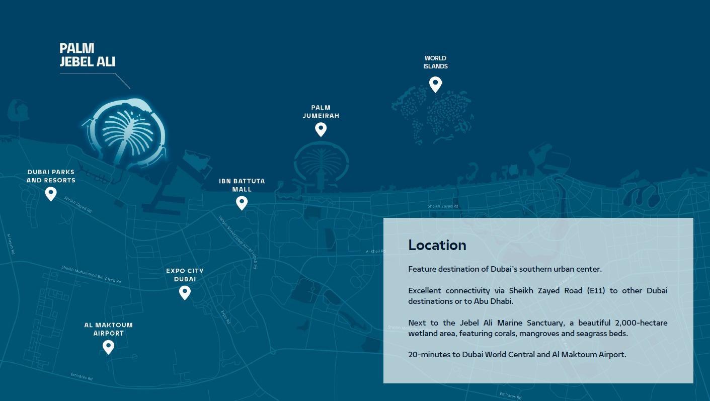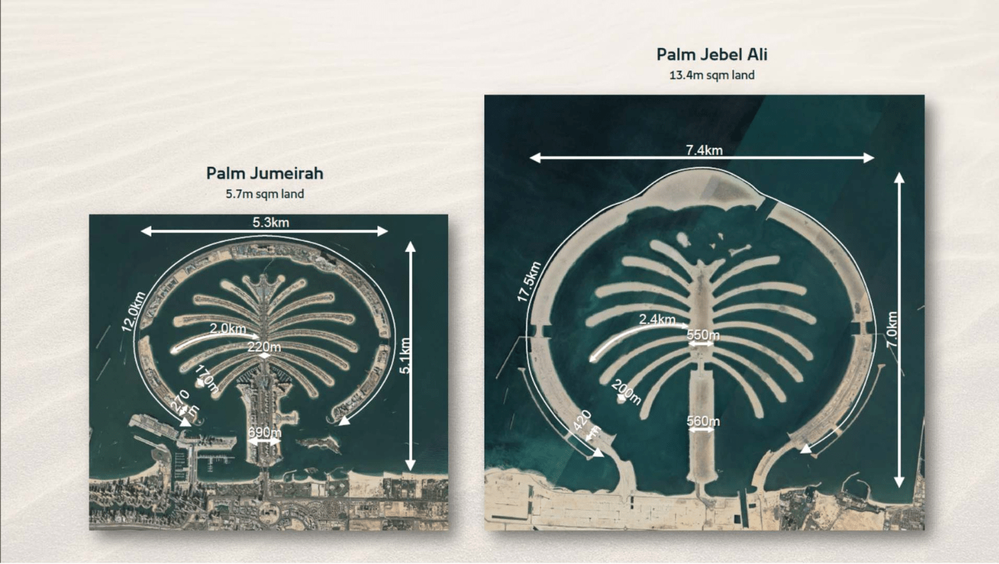 Palm Jebel Ali offers world-class resorts, luxury villas, upscale shopping, and diverse recreation — a true symbol of Dubai's iconic lifestyle.